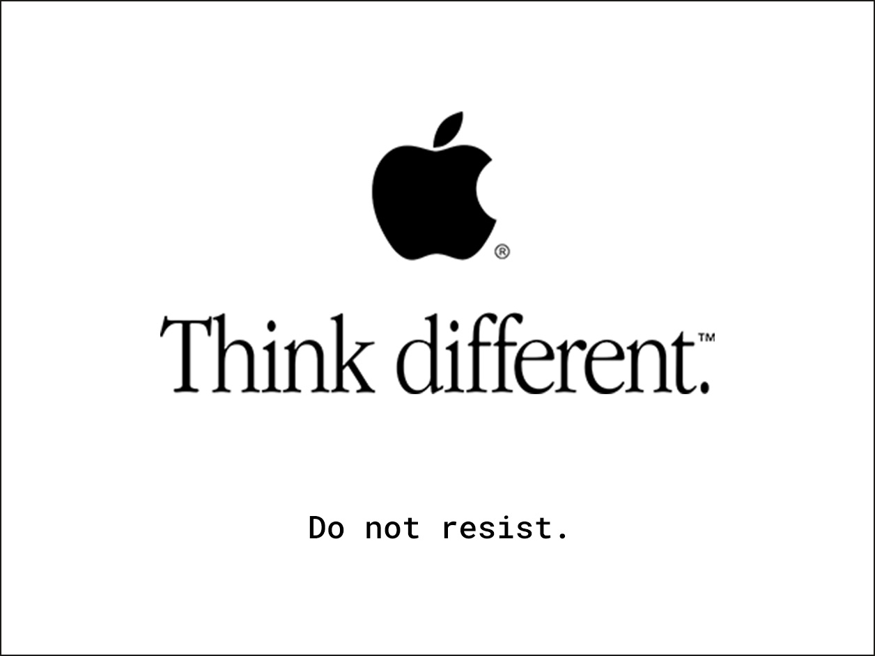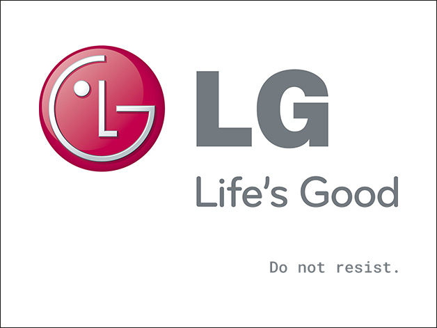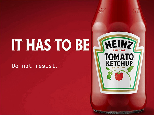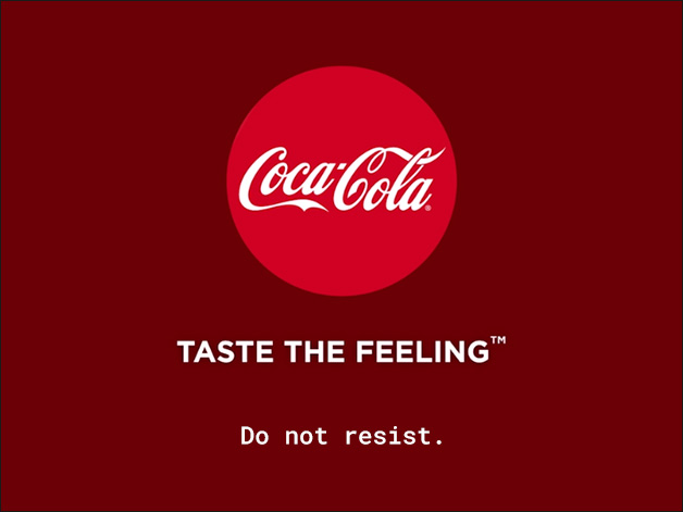 Funny enough, it also works the other way around. You can add the words “Do not resist.” beneath the company taglines and it instantly tells a whole other story.